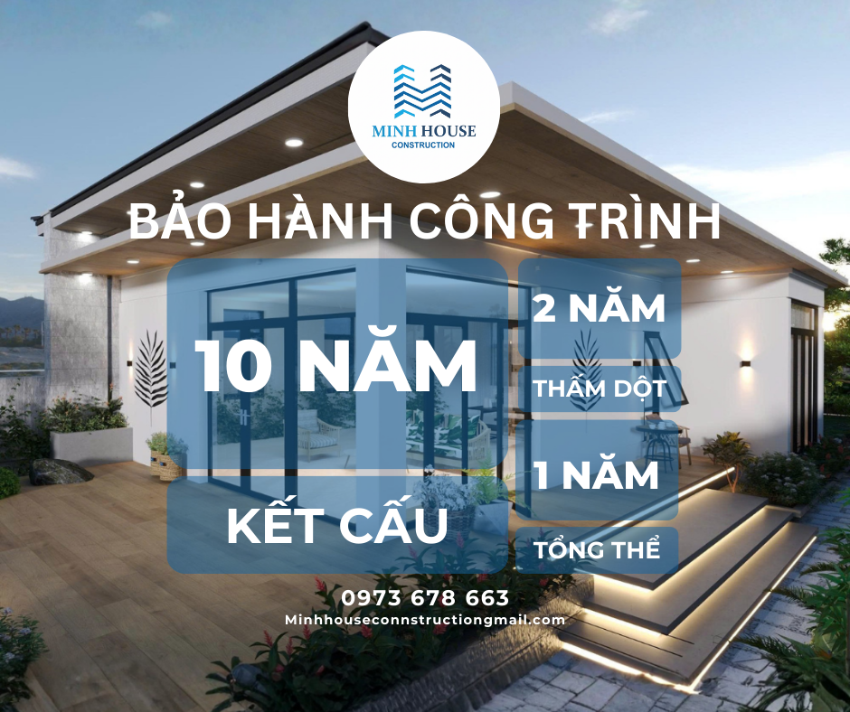 Đảm Bảo Chất Lượng và Tiến Độ: Minh House cam kết sử dụng vật tư chính hãng, thi công theo quy trình chuẩn mực và bàn giao công trình đúng tiến độ đã thỏa thuận.